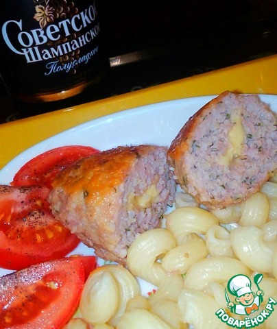 Сформовать котлетки, в середину положить по кусочку сыра.