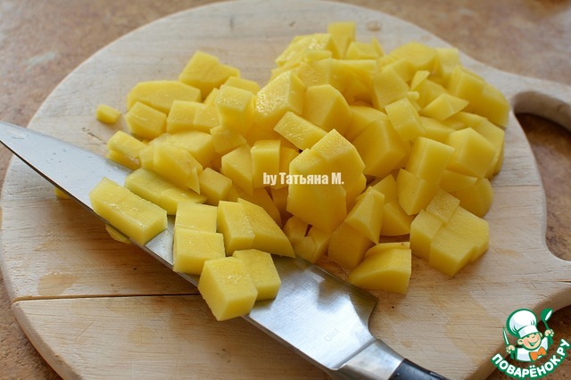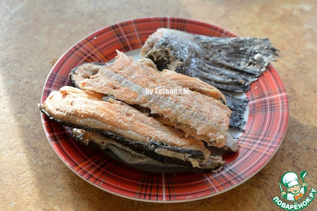 Пока варится суп, отделить филе рыбы от кости, порезать на крупные кусочки (для ребенка порезать на мелкие); -
