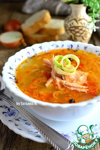 Готовый суп разлить по тарелкам, добавить рыбу, можно "подбелить" жирными сливками или сметаной, и подавать в горячем виде!