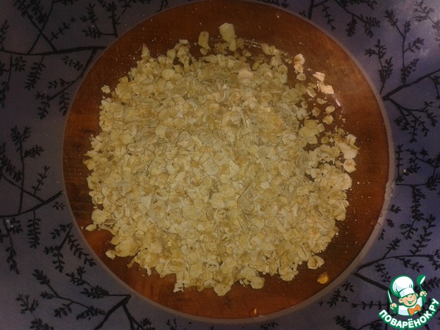 В миску насыпаем овсяные хлопья (можно и овсяную муку).