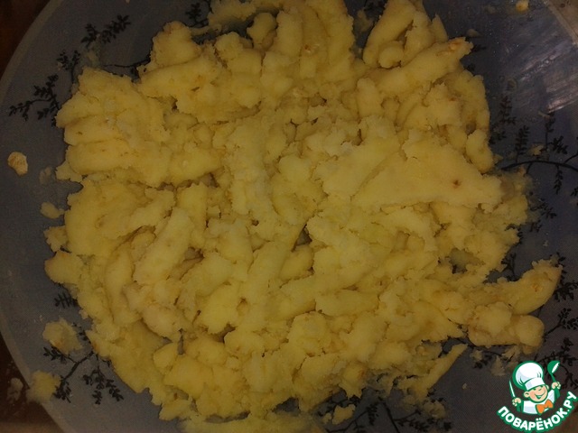 Смешиваем с картофелем, маслом, яйцом, мукой и дрожжами, предварительно растворёнными в тёплом молоке, солим.
