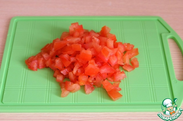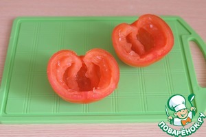 Для салата лучше брать помидоры с толстой стенкой. Из помидоров удалить жидкость с семенами.