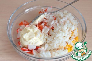 Нарезать крабовые палочки.