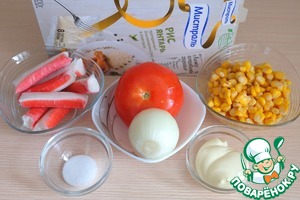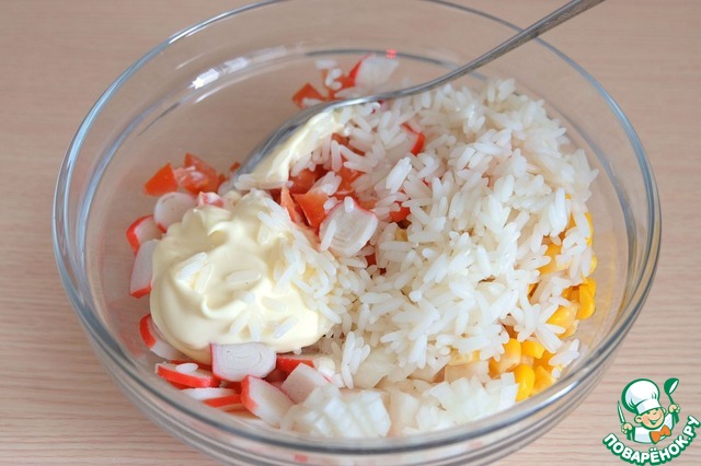Ингредиенты для салата выложить в миску, перемешать. Добавить соль по вкусу, заправить столовой ложкой майонеза.