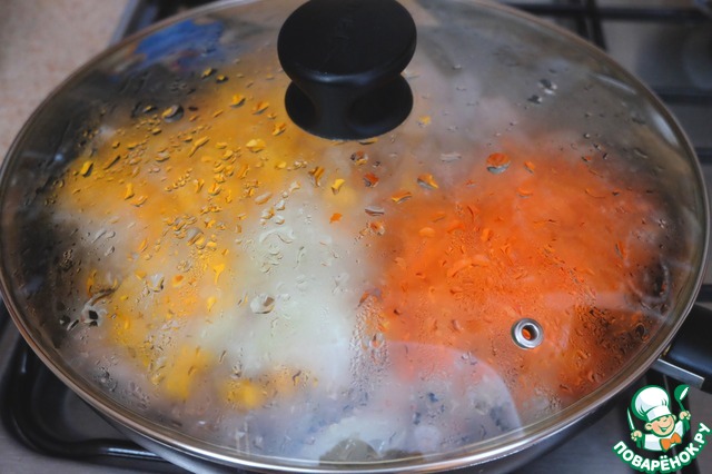 Накрыть сковороду крышкой, убавить огонь до минимума, тушить на слабом огне 25-30 мин.