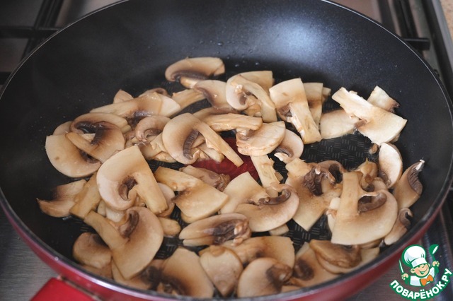- Масло растительное (5 ст. ложек для обжарки мяса, 2 ст. ложки для обжарки грибов) — 7 ст. л.