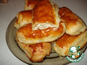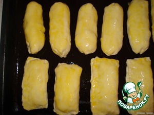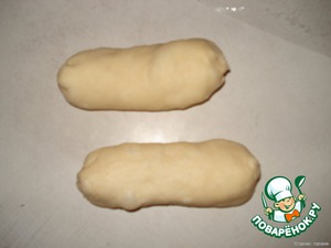Можно сформировать в виде валиков. Как показала практика, после того как они испекуться, их формы получаются одинаковыми, но данный способ выигрывает тем, что тесто не раскрывается, а в первом случае иногда (во время поднятия теста) шов расходится. Кстати пироги следует сразу же выкладывать на противень (заранее смазанный растительным маслом), так как тесто очень воздушное и быстро поднимается.