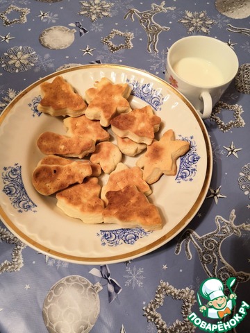 [+5]Верх я смазала молоком и посыпала сахаром. Печенье делала для ребенка, поэтому раскатывала и вырезала формочками.