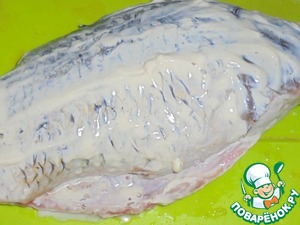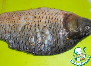 Карпа чистим и удаляем внутренности. Промываем хорошо водой и обрезаем плавники.