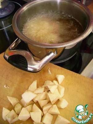 Разогреть масло в подходящей для обжарки во фритюре посуде.
