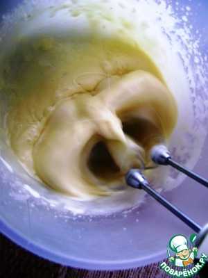 Масло взбить добела, затем, добавляя понемногу сгущенное молоко, взбить в пышный крем.