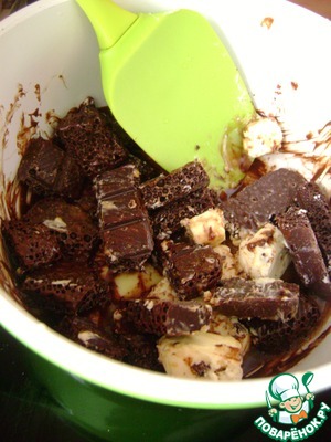 Для глазури растопить ломанный шоколад со сливочным маслом, помешивая, до однородности на слабом огне.