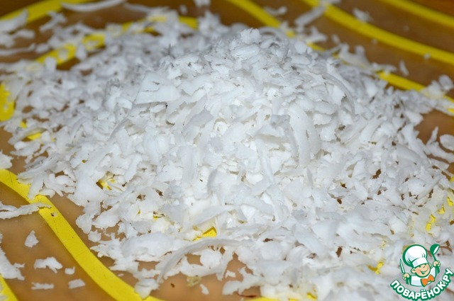 Кокос натираем на терке, банан нарезаем кружочком.
