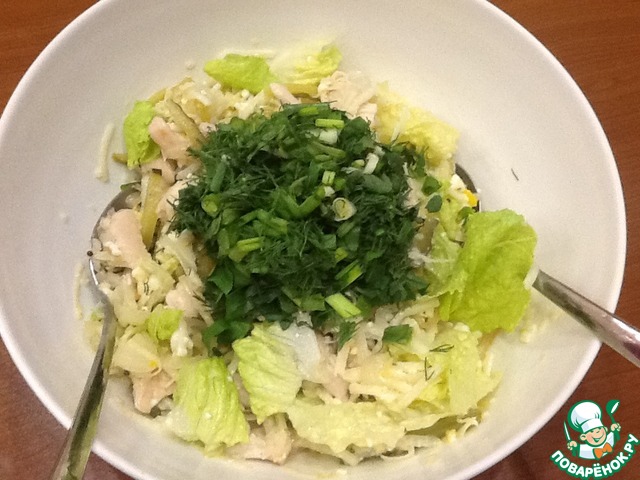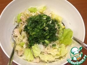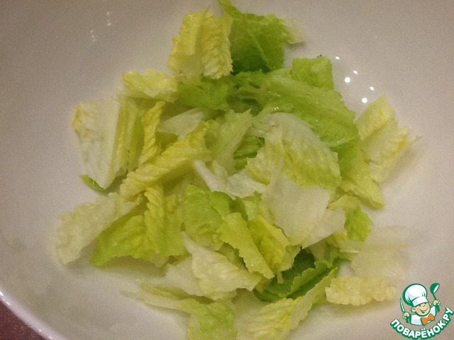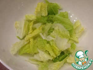 Порвем листья салата в салатник.