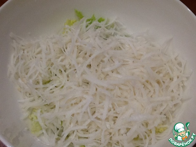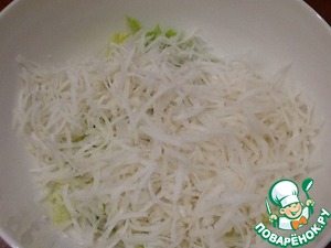 Добавим туда натертую на крупной терке редьку.