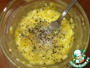 Размешаем вилкой до максимальной однородности, добавим соль и перец по вкусу.