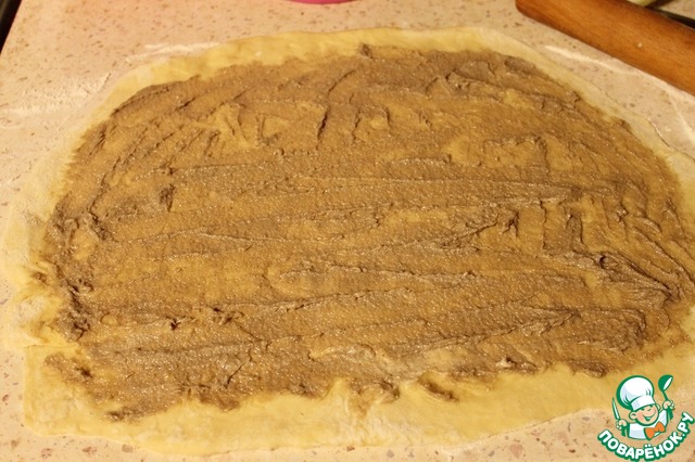 Стол припылить мукой и раскатать на нем тесто в большой овал.
