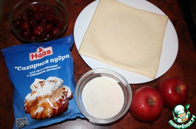 Ингредиенты для «Тарт Татен с яблоками и вишней»: