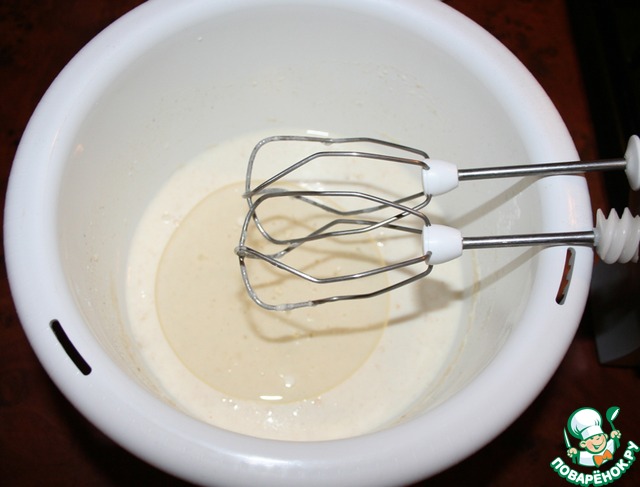 Смешиваем все ингредиенты, согласно инструкции на упаковке. Сначала высыпаем сухую смесь, а затем добавляем остальные ингредиенты