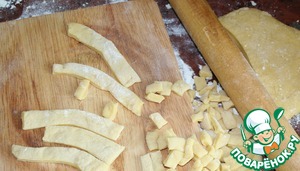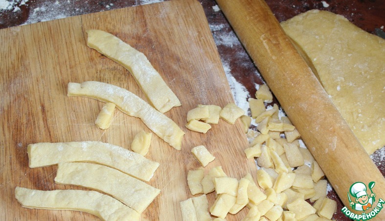 Раскатываем из теста жгутики и режем небольшими кусочками.