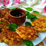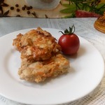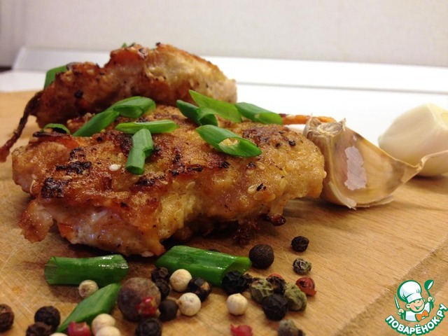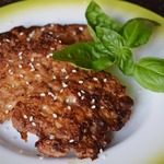 У меня сделано из куриного филе, кунжута не было, положила ложечку арахисовой пасты. Старалась сделать оладьи маленького размера, мне кажется так интереснее))