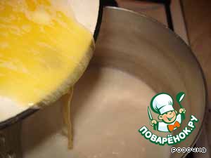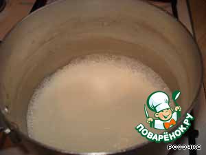 Варим (при тихом кипении) до тех пор, пока ириски не растают. Затем выключаем газ и остужаем массу.