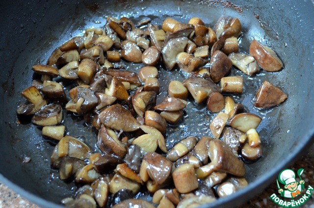 • Также необходимо пожарить грибы. Я использую замороженные подберезовики.