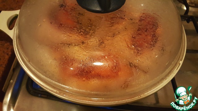 Обжарить окорочка кожей вниз, затем перевернуть, накрыть крышкой и тушить до готовности. -