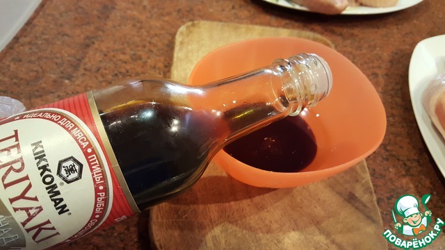 В маринаде для куриных окорочков я использовала соевый соус-маринад Терияки ТМ Киккоман. -