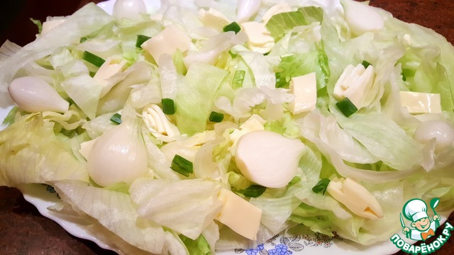 - Листья салата / Салат (айсберг, для подачи) — 0,5 вилок