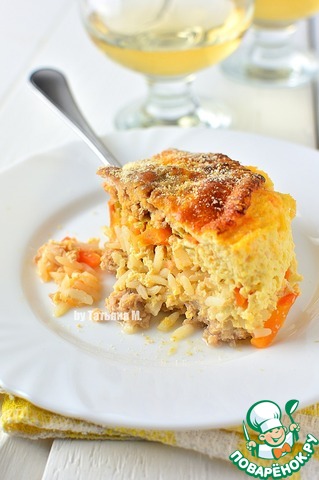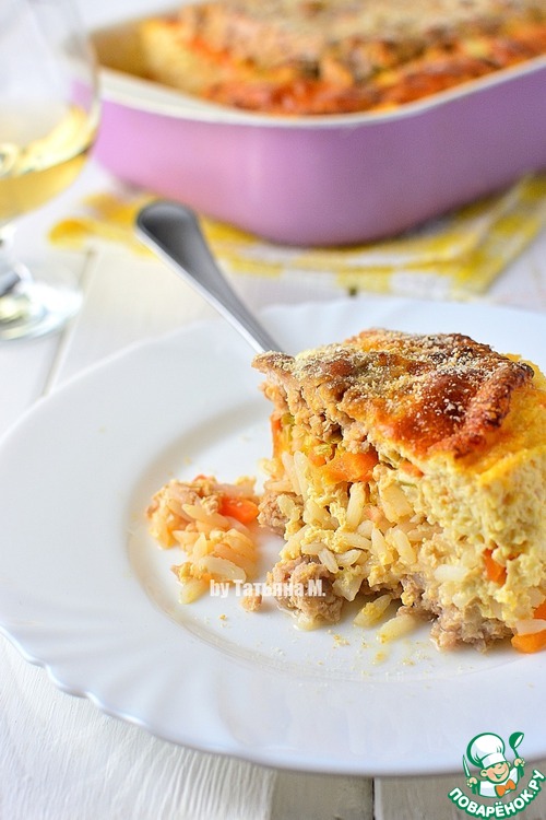 На фарш выложить рис.
