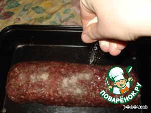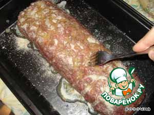 Соединяем края фарша. Придаем изделию форму рулета. Концы рулета тоже закрываем.