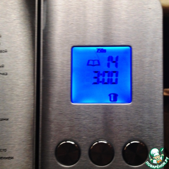 Установить программу "Ржаной хлеб". Вес - "750 г", цвет корочки - "Тёмный". Нажать кнопку "Старт/Стоп". Готовить до окончания программы.