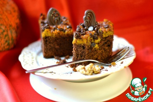 Невероятно нежное шоколадное пирожное! Тыква с орехами идеально подходят к шоколаду! Попробуйте! Очень интересно!