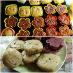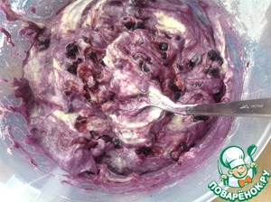 Соединить обе массы. Быстро перемешать. Добавить чернику. Очень важно смешивать быстро, иначе маффины получатся сухими. Тесто также не должно стоять.