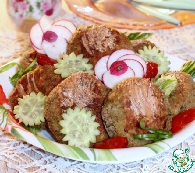 8. В сковороде разогреваем растительное масло и жарим биточки с двух сторон до золотистой корочки. Затем выкладываем биточки на бумажные салфетки, чтоб удалить лишнее масло, а потом перекладываем на сервировочное блюдо и подаем.