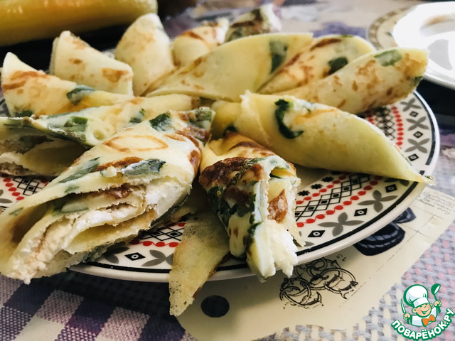 Ингредиенты для «Блины с сыром и шпинатом»: