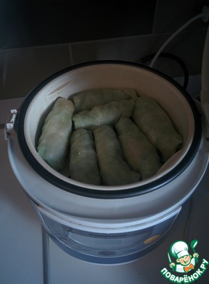 Сформированные голубцы уложить плотно в пароварку и готовить в течениe 15 мин.