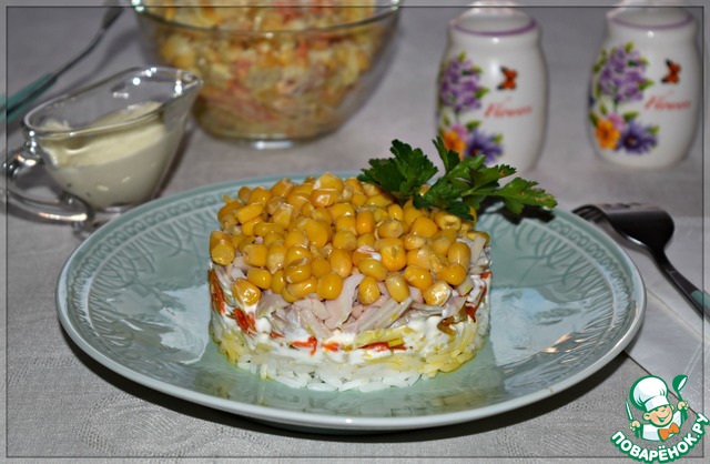 Рецепт «Салат с консервированным кальмаром "Домашний"»: