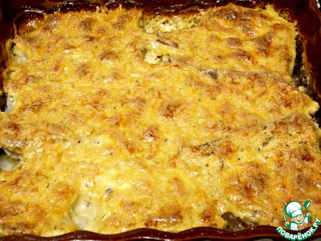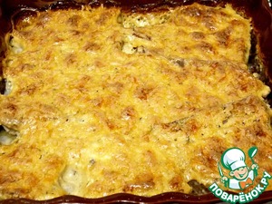 Запекать при t= 180 примерно 40 мин. до румяной корочки. Подавать сразу с любым гарниром.