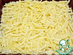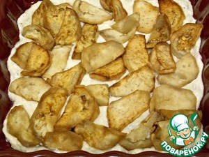 Форму смазать маслом, положить 1/3 творожной массы,1/2 баклажан, покрыть еще 1/3 творожной массой.