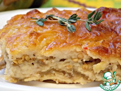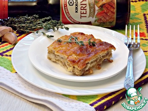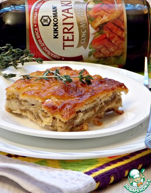 Нежная, ароматная запеканка с сырной корочкой и запахом тимьяна. Легкая остринка от сыра и чили делает ее очень пикантной. Баклажаны очень гармонично вписывается в нее, а соевые соусы от ТМ " Kikkoman ", полностью заменяют тут соль. Ну, по крайней мере для нас.