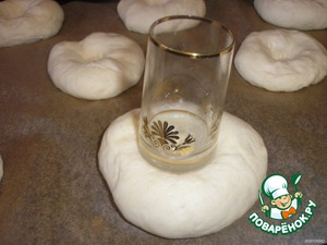 Шарики слегка приплюснуть и внутри каждого шарика рюмкой или толкушкой сделать углубление.