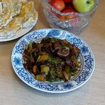 Далее добавили морковку, капусту, перемешали и добавили древесные грибы. Добавили куриную приправу jijing, чёрный китайский уксус, соевый соус, бадьян и сахар. Развели в холодной воде крахмал и вылили в сковороду. В конце добавили остатки чеснока.
