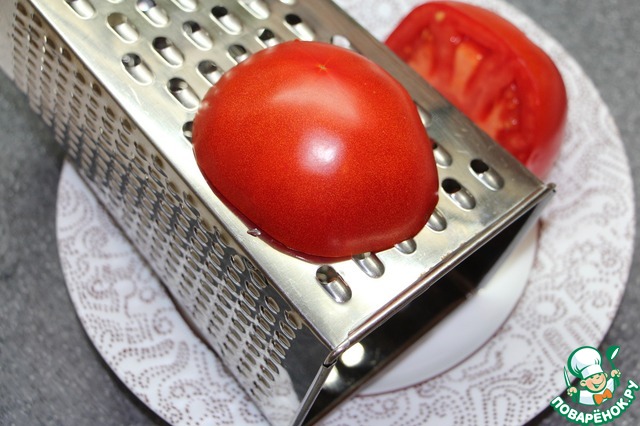 Срезом натереть на терке так, чтобы в руке осталась лишь шкурка. -