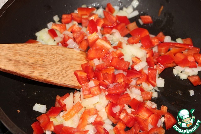 У болгарского перца удалить семена и перегородки, мякоть порезать кубиками.