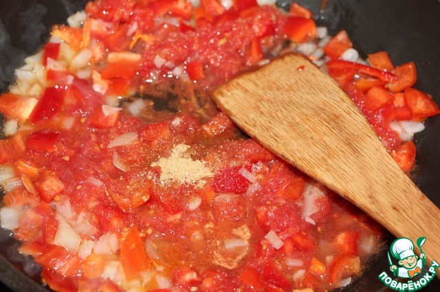 Затем добавить мякоть помидора, добавить коричневый сахар, перемешать до растворения сахара.