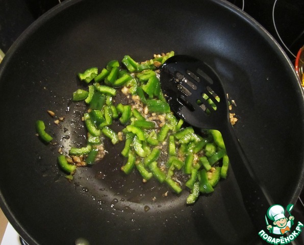 Добавить к ним болгарский перец на 3-4 минуты. -