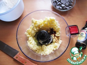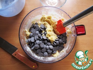 Постепенно помешивая, добавить муку с разрыхлителем. Вмешать шоколад в тесто. Убрать в холод на 10-15 минут.