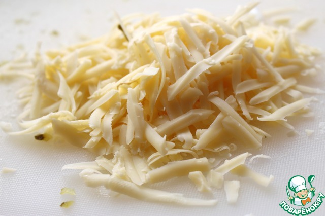 Сыр также натереть на крупной терке. Для этого салата хорошо подходят сыры типа маасдам или эмменталь, но можно брать и любого другого сорта.